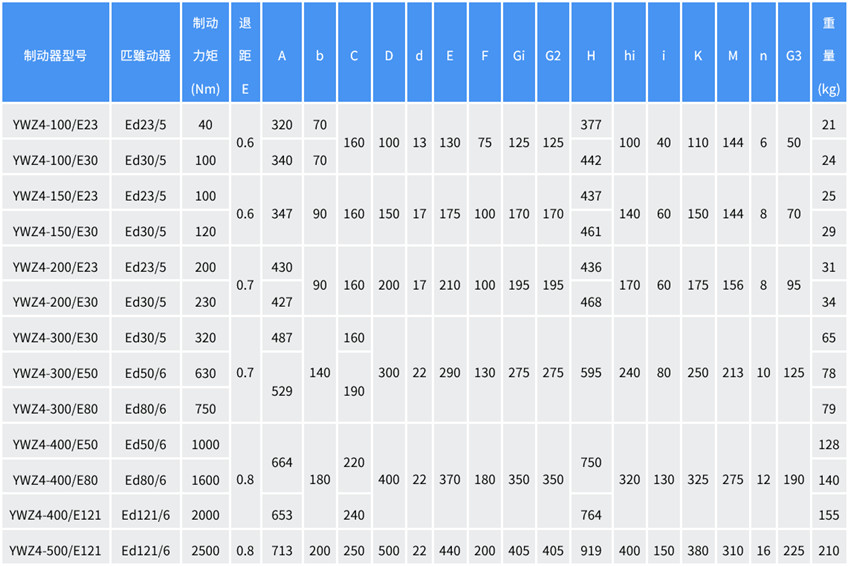 注:YWZ4系列的制動(dòng)器匹配Ed推動(dòng)器,替代原YWZ4B系列;
