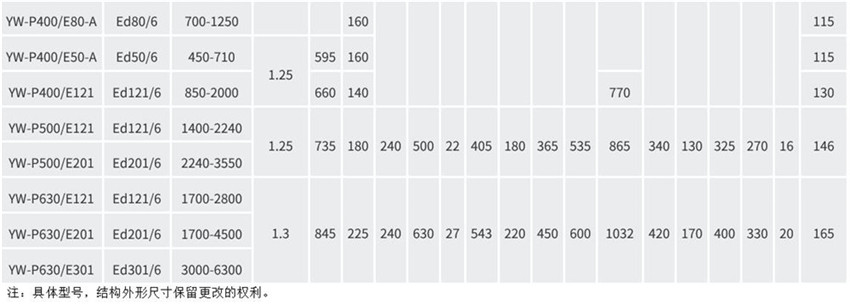YW-P系列的電力液壓鼓式制動器的安裝尺寸符合DIN15435和JB/T7021-2006標(biāo)準(zhǔn),YW-P-A的產(chǎn)品安裝尺寸符合GB6333-1986,其技術(shù)要求符合JB/T6406-2006標(biāo)準(zhǔn)。