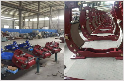 安裝完成后,更換上述拆下的部件。將制動器放在主機底座上后,擰松地腳螺栓,轉(zhuǎn)動拉拔器(橫桿),然后將制動器兩側(cè)閘瓦隨動件中的調(diào)整螺栓粘在制動鼓上,如果粘著不好,繼續(xù)轉(zhuǎn)動拉拔器橫桿),當(dāng)閘瓦之間粘附時制動鼓表面達(dá)到好的狀態(tài),停止轉(zhuǎn)動,擰緊地腳螺栓。